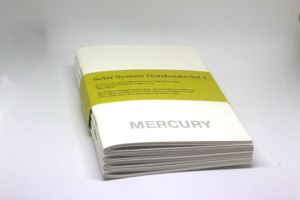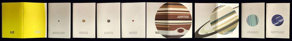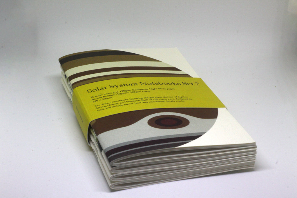 This set of 9 notebooks provides you with a scaled version of the Solar System to help you grasp the sheer size of the things like the Sun, Jupiter and Saturn and just how insignificant the Earth appears among these others. Each notebook has a inner page with all of the vital information about it's planet (or Sun), and a set of Universal constants on the back page to explain the measurements used.