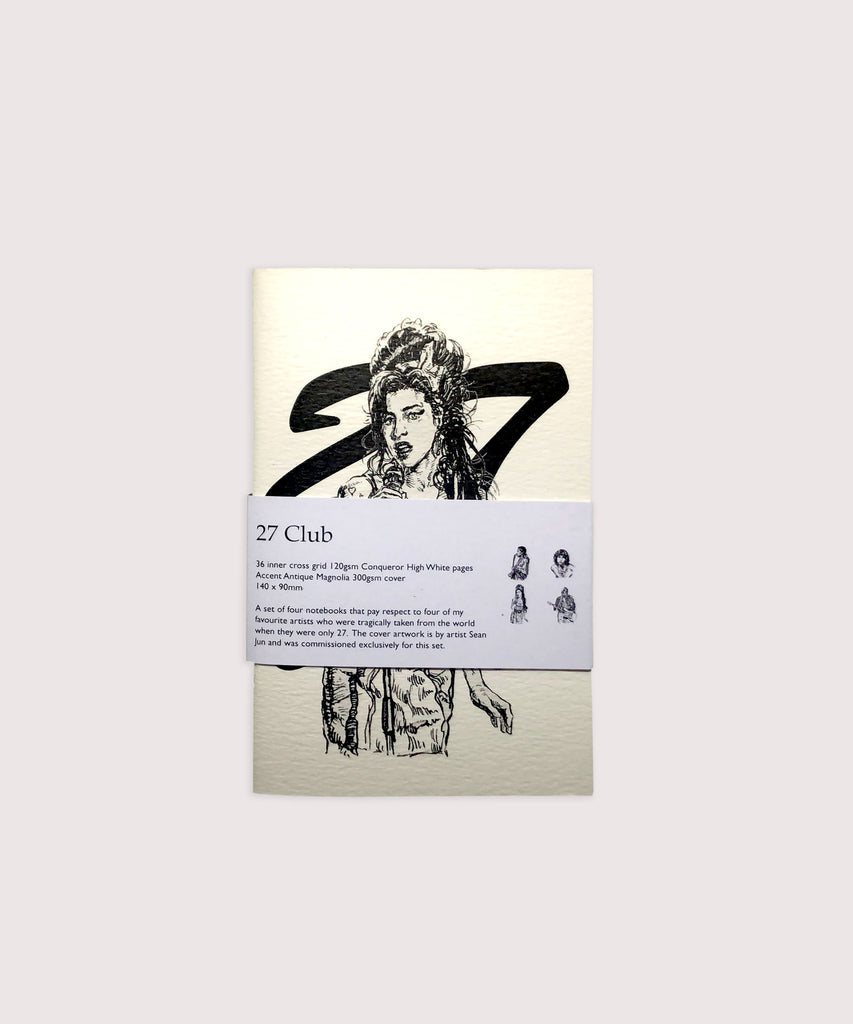 A set of four notebooks that pay respect to four of my favourite music artists who were tragically taken from the world when they were only 27.
